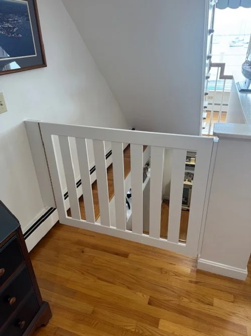"Just wanted to show you the final product of that top of stairs gate. It works perfectly and melds beautifully with the stairwell. I can finally breathe easy knowing my daughter will be safe when we are upstairs. Thank you so much for working with me through this process. Your product is outstanding!"
